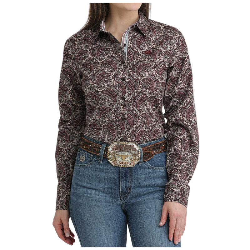 Cinch Women's Long Sleeve Button down Western Shirt in Brown Multicolor Paisley