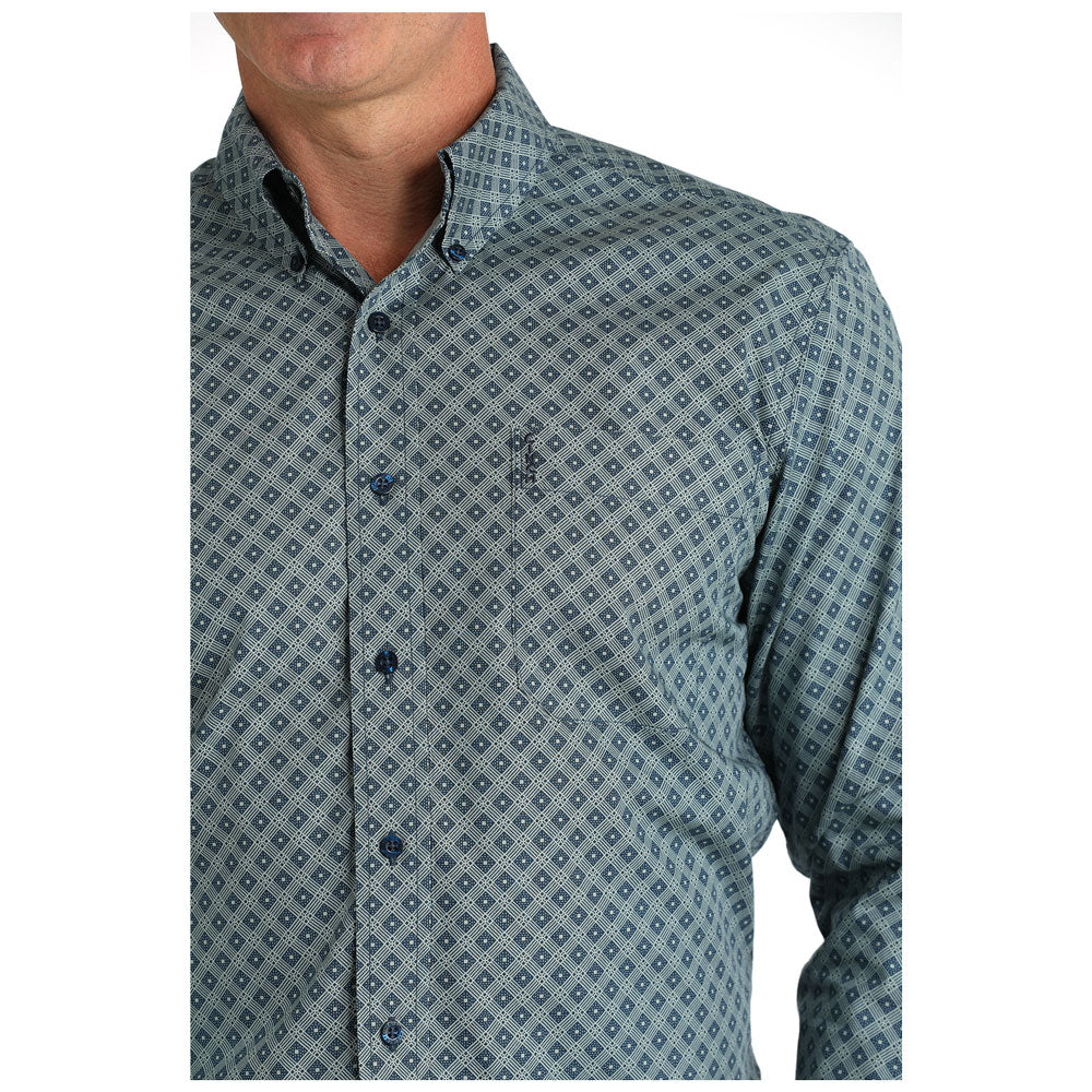 MTW1347112 Cinch Men's Modern Fit Long Sleeve Buttondown Shirt - Navy Print