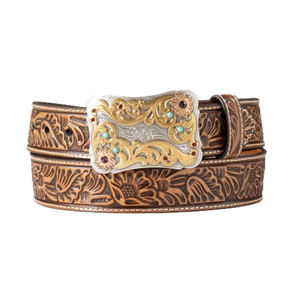 N320005648 Nocona Women's Floral Embossed Belt w/ Scalloped Belt Buckle