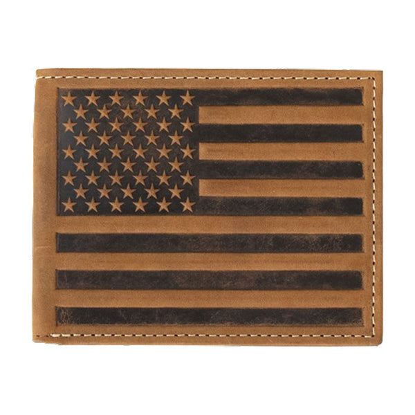N500044202 Nocona Men's Brown Embossed Flag Bi-Fold Wallet