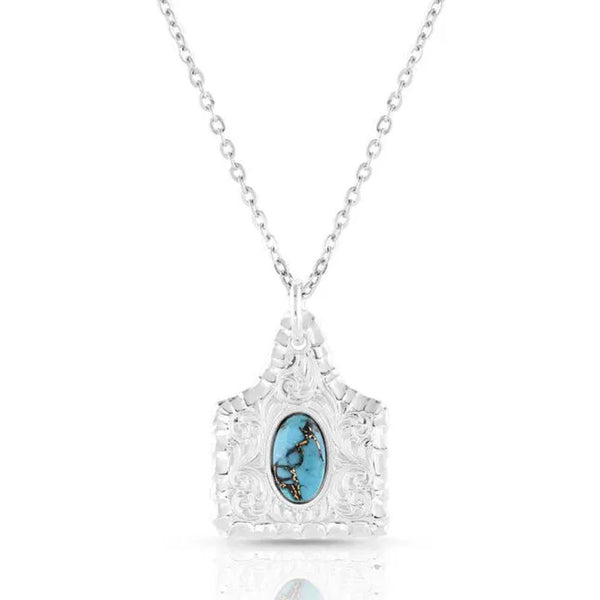 NC5398 Montana Silversmiths Chiseled Cow Tag Turquoise Necklace