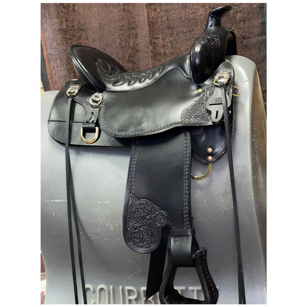 - Western fenders with EBS, Ergobalance, leather laced stirrups to reduce joint fatigue and promote balanced riding.