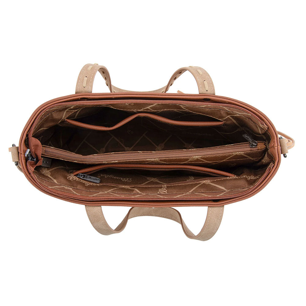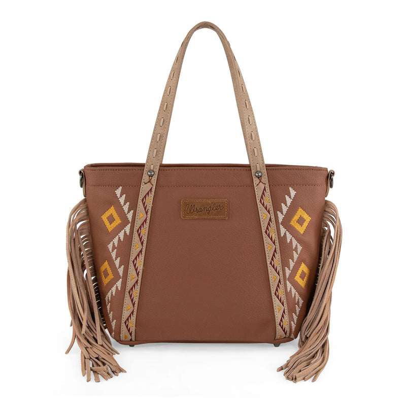 WG233-2009 Wrangler Aztec Embroidered Tote Crossbody Bag - Light Brown