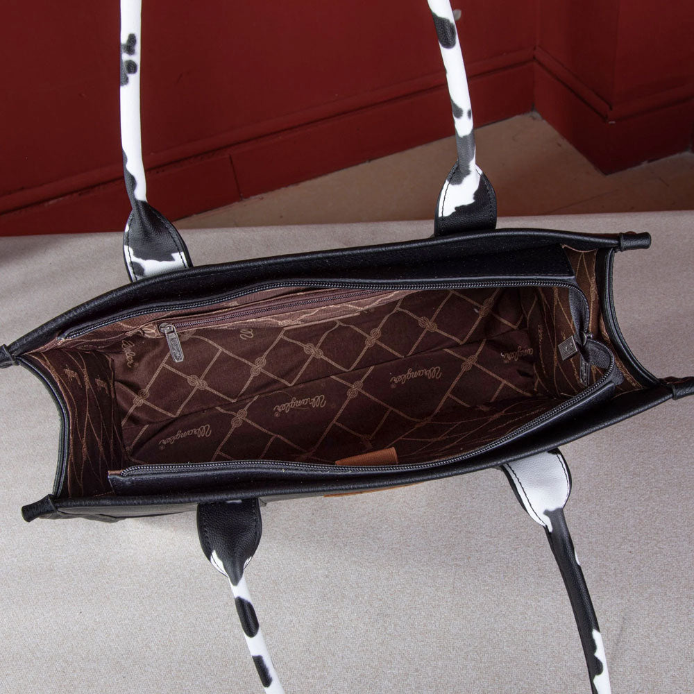 WG102G-8119 Wrangler Cow Print Concealed Carry Wide Tote - Black